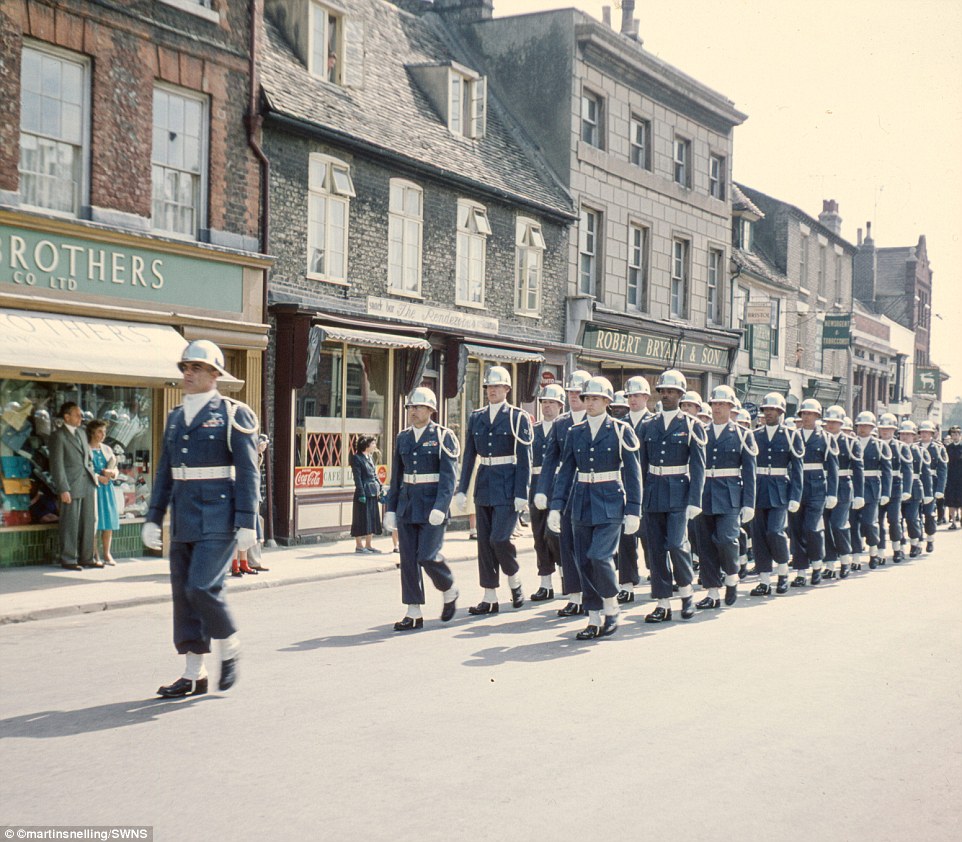 airmen from RAF Alconbury marching past the Rendezvous St Ives in 1960