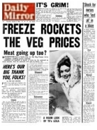 The winter freeze of 1963 caused a huge rise in the price of vegetables because the ground was to hard for farmers to harvest them. |