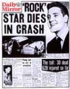 Easter Monday 1960 American Rock star Eddie Chochran died in a road crash at Chippenham Wiltshire while on route to Heathrow from Bristol |