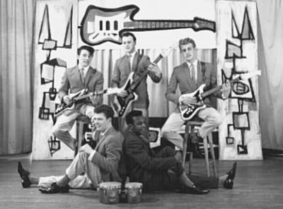A later line up (back row left to right) Mac McDaid (rhythm) Barry Hunt (bass) Paul Allison (lead). Seated (front row) Peter Ritchie (drums) and Bob Marshall Lead Singer. |